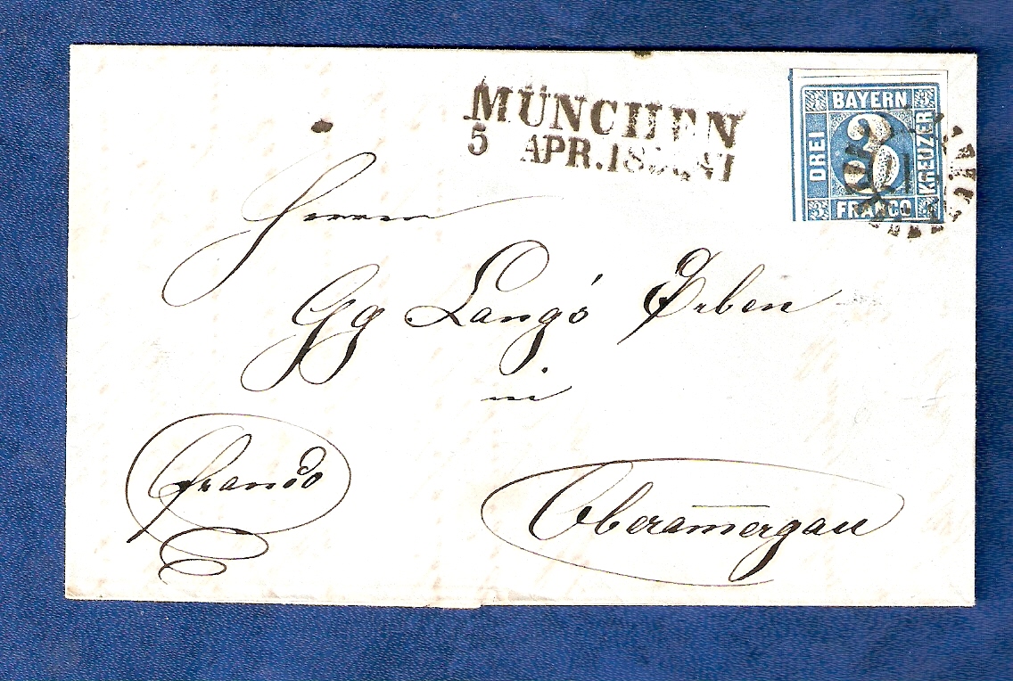 Hier ein Brief von München nach Oberamergau vom 5 April 1856.