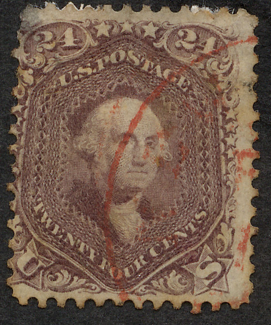 1.) 3c rosa von 1861, Scott Nr. 65 (sofern die Marke keine Waffel-Einpressung aufweist), gestempelt $3.00