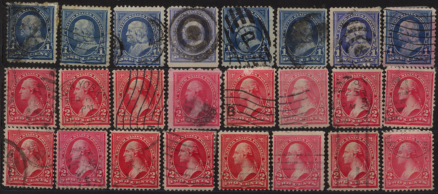 habe hier 2 und 3 Cent Marken von Washington mit div. Stempeln.