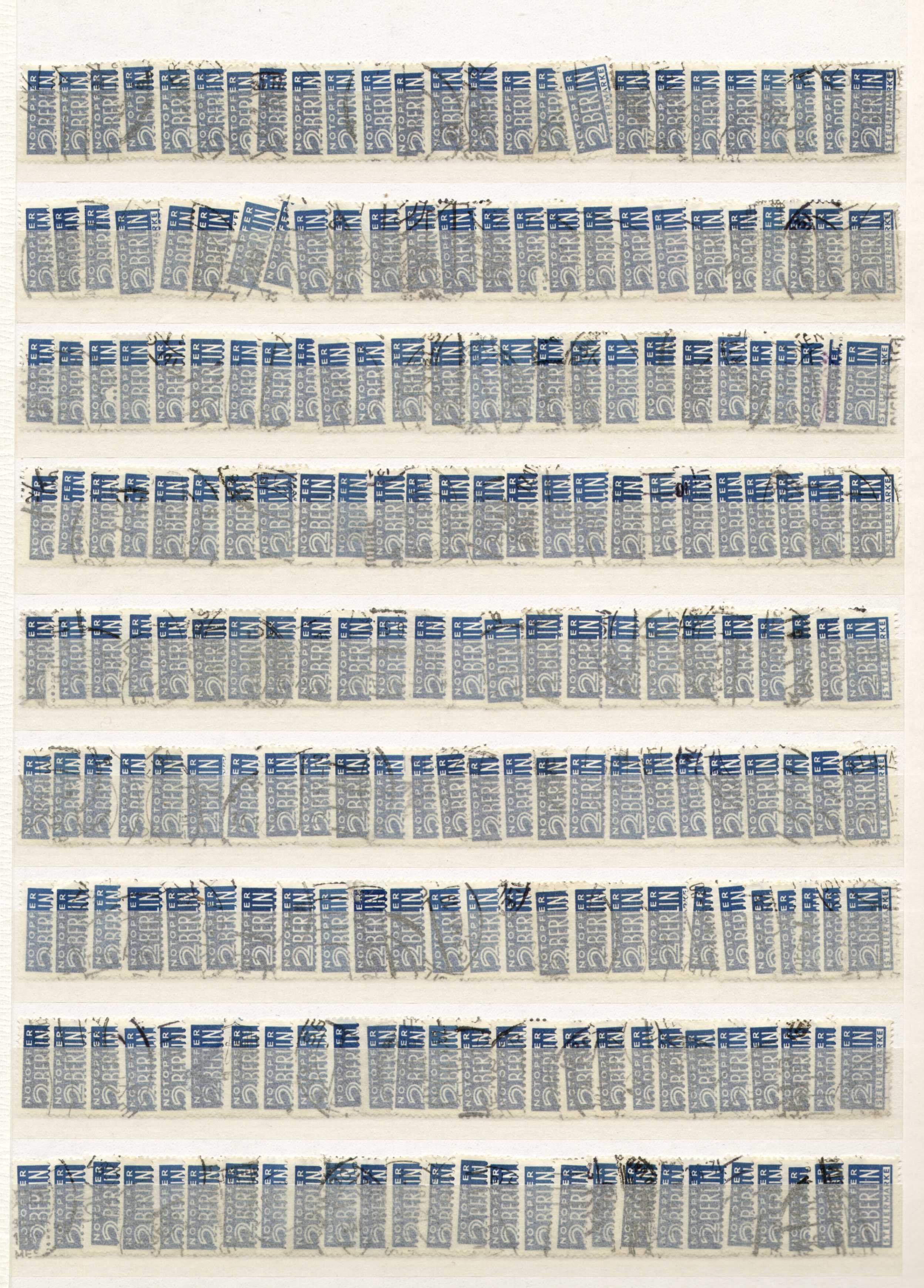 Nach der Blockade Berlins 1948 durch die Sowjetunion und Sperrung aller Zufahrtswege suchten zwar die Besatzungsmächte der Amerikaner und Briten per Luftbrücke nach Möglichkeiten, die Berliner Bevölkerung zu versorgen. Die allgemeine Not blieb dort aber groß, so dass ein Gesetz "Notopfer Berlin" erlassen wurde: eine Anzahl von Postsendungsarten war zusätzlich zum bisherigen Porto mit einer Steuermarke zu 2 Pfennig zu frankieren, andernfalls wurde die Postsache nicht befördert. Dies war zunächst bis Ende Februar 1949 befristet worden.