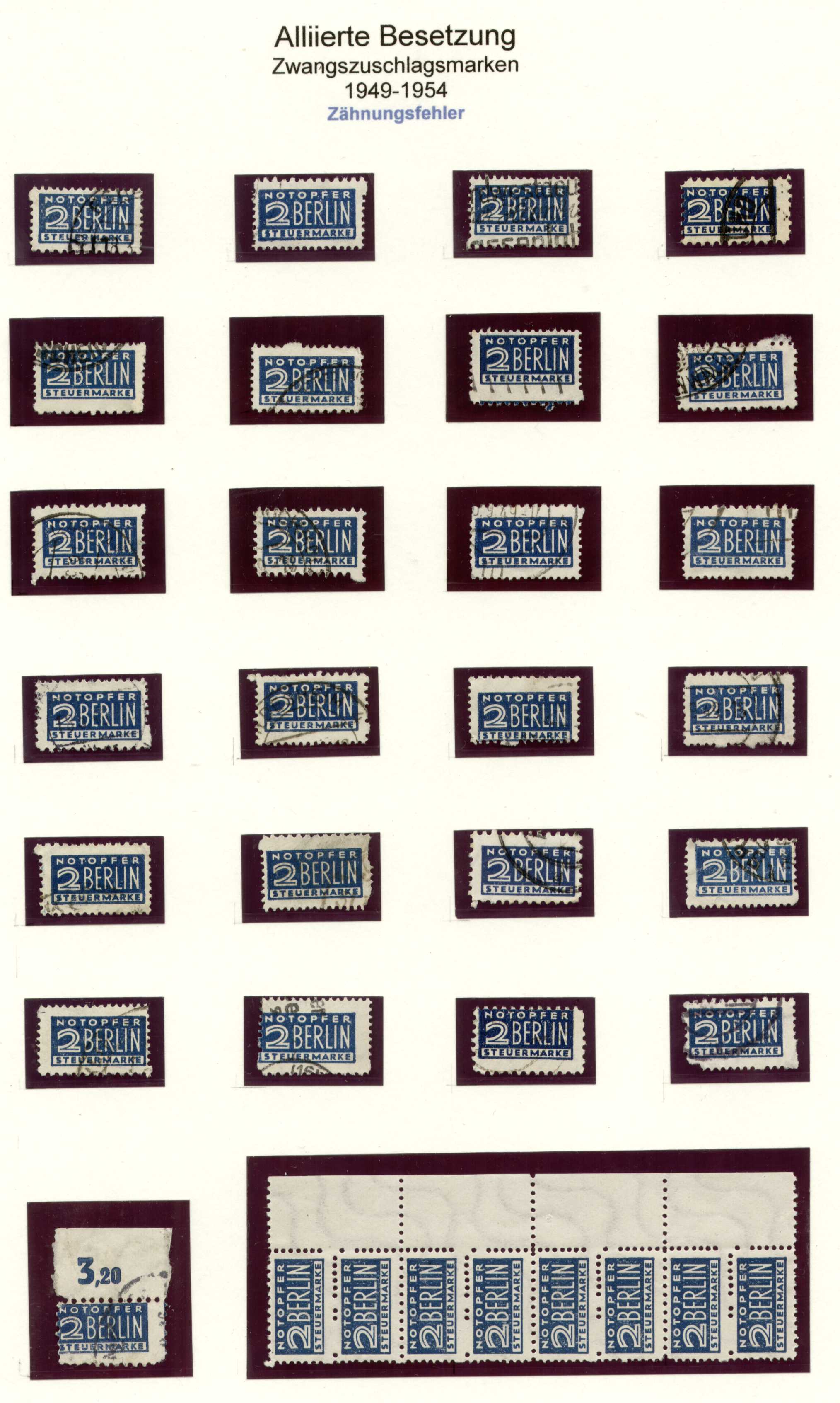 Die Artenvielfalt der Zwangszuschlagsmarken ist immens: anfangs geschnitten, später gezähnt, 4 verschiedene Zeichnungen, mindestens 13 Zähnungsarten (ganz zu schweigen von unzähligen Privatzähnungen verschiedener Postämter), 5 Papiervarianten und 7 verschiedene Möglichkeiten der Wasserzeichen stellen den Sammler vor ganz schöne Aufgaben!