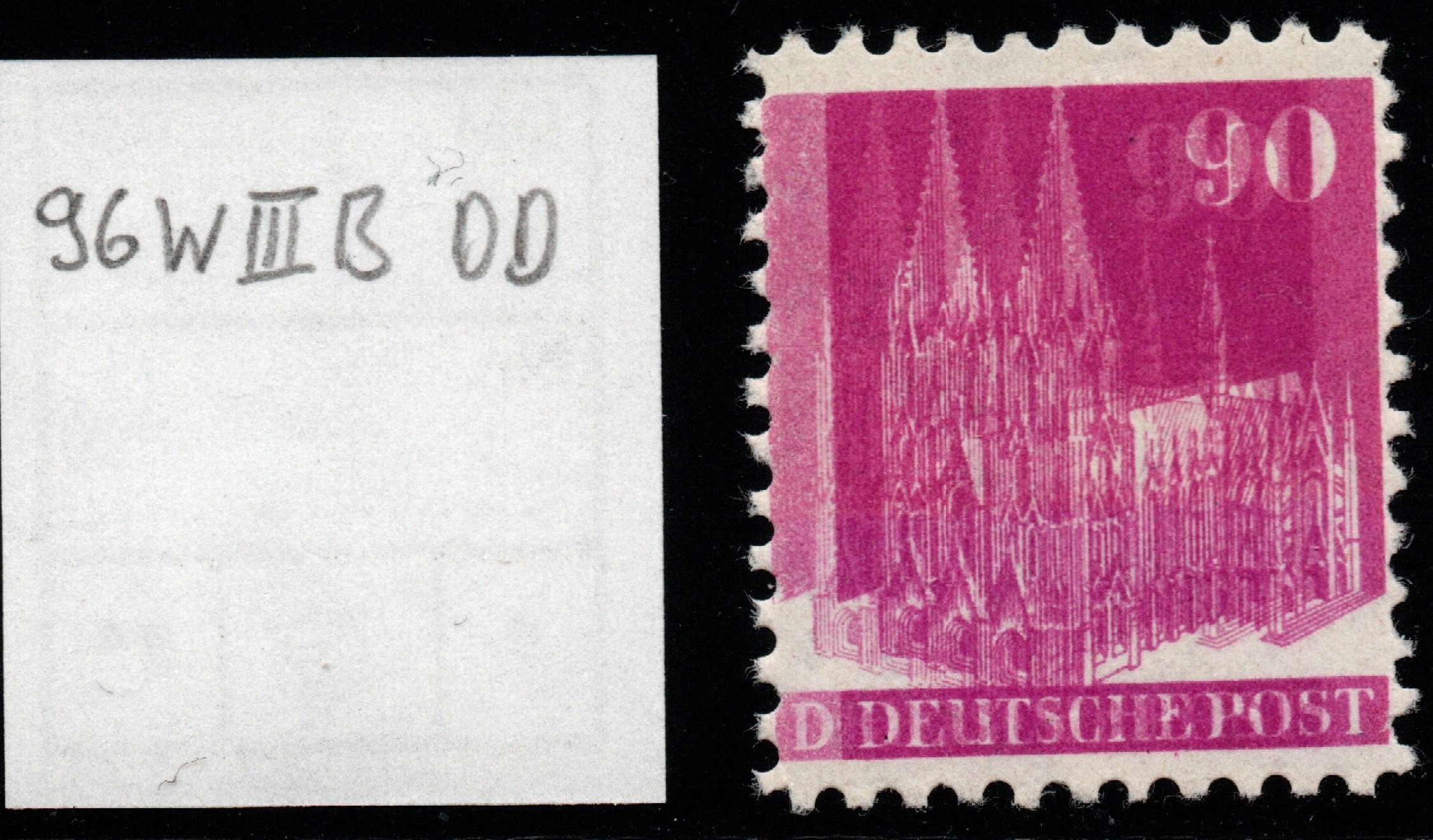 NOP Nummer 6 Z oder V und Plattenfehler A96 - weißer Punkt links unten neben dem unteren Rahmen, Höhe Fuß S von STEUERMARKE