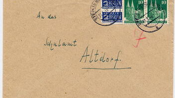 Der Sowjetischen Besatzungszone war diese Markenausgabe natürlich sauer aufgestossen, und wenige Wochen nach Erscheinen, ab Ende Dezember 1948, schickte sie Sendungen an den Absender zurück, die diese Zuschlagsmarke aufwiesen (obwohl sie bei Sendungen "nach drüben" garnicht Pflicht war).
