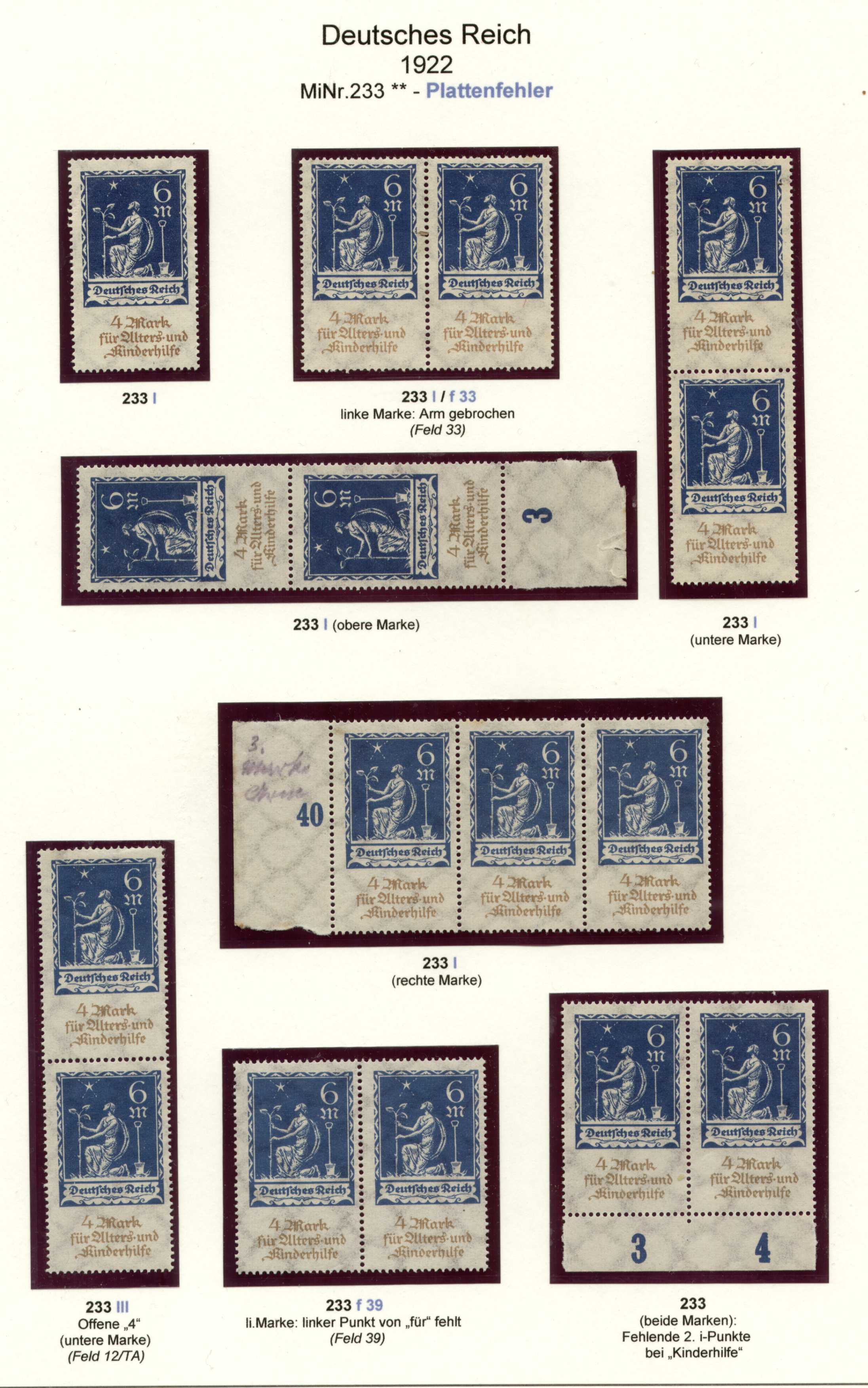 Als weitere Beispiele heute die DR 233 und DR 234, zur Verdeutlichung mit anhängenden normalen Vergleichsmarken; zunächst die MiNr.233: