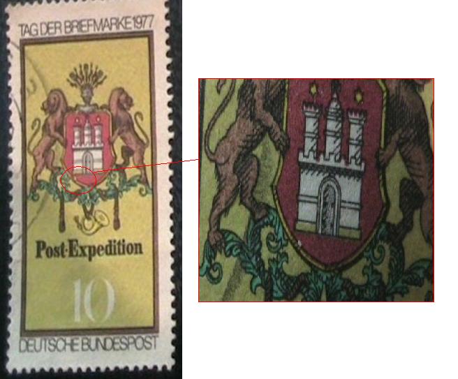 Foto 2: Tag der Briefmarke 1977 "Am Wappen unten Rahmen innen gebrochen"