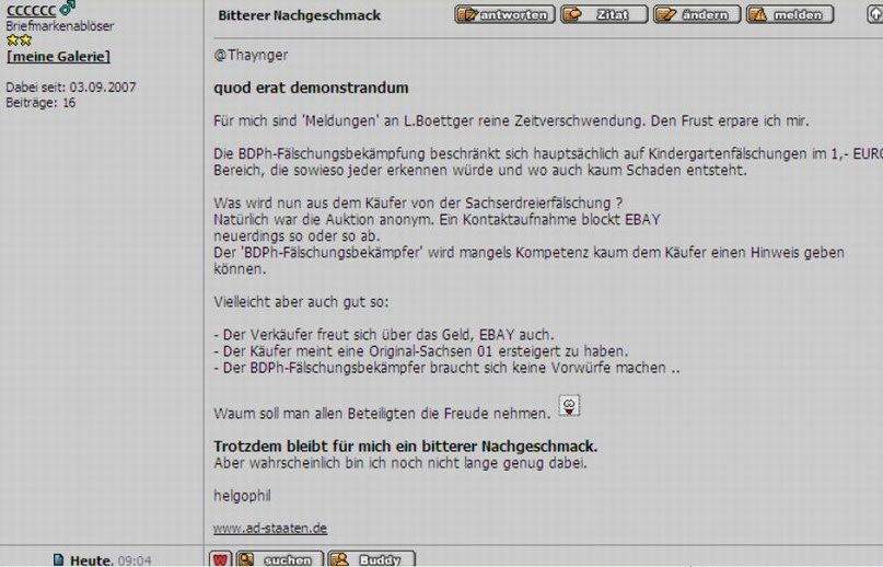Was sich im Philaforum (Titel: "Unfassbar") abgespielt hat, hat mich zutiefst empört. Der Herr vom BDPh ist nicht nur unglaublich arrogant, er hat offensichtlich von Briefmarken überhaupt keine Ahnung.