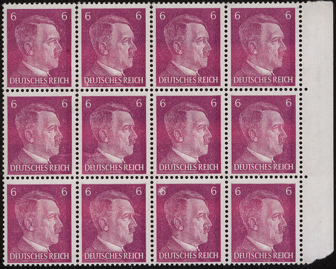 Ich habe diesen 12er-Block DR gefunden. Bei genauerem Hinsehen ist zu sehen, daß durch jede Reihe des gesamten Blocks Ein hellerer Farbstreifen geht. Gab es solche fehlerhaften Farbabweichungen bei diesen ausgaben häufiger? Wie könnte so etwas entstanden sein?