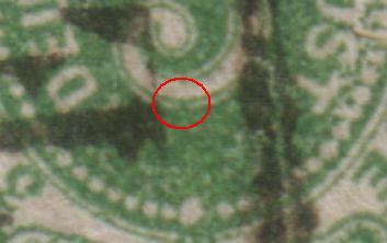 Ich stelle hier gleich mal die Ausschnittsvergrößerung ein - und möchte auf den Bruch der Umrandung der "3" hinweisen (Umrandung unten, mittig zwischen den Stempelabdrücken).