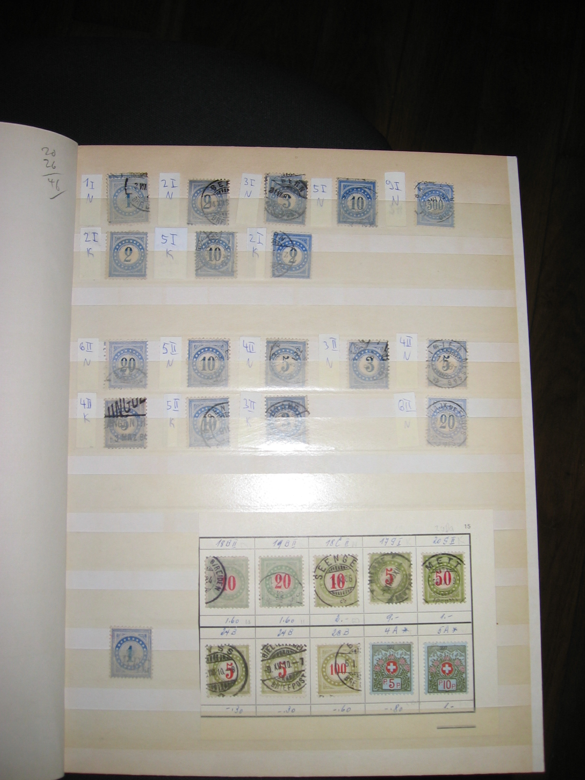 Die ersten Portomarken der Schweiz erschienen im Jahr 1878 in der Farbe "blau/dunkelblau". Und die ersten Ausgaben waren alle in der Type I. Im Gegensatz zu den olivfarbenen Marken wurden diese in Millionenauflagen gedruckt, darum hat jojo auch gleich 4 Stück davon.