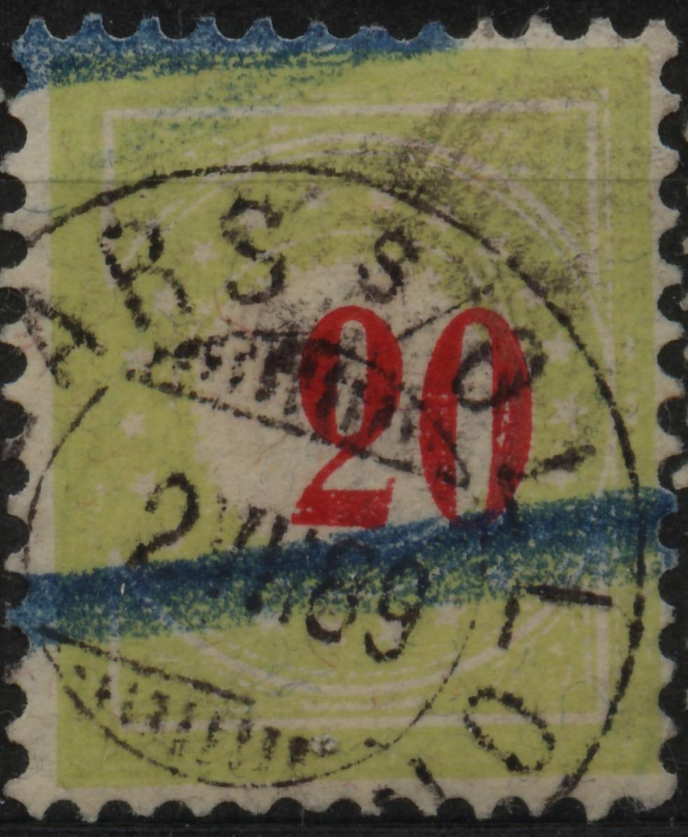 Bei der anderen Portomarke handelt es sich um die Mi-Nr. 19AXc, Gelbgrün, Type II, Rahmen normalstehend.