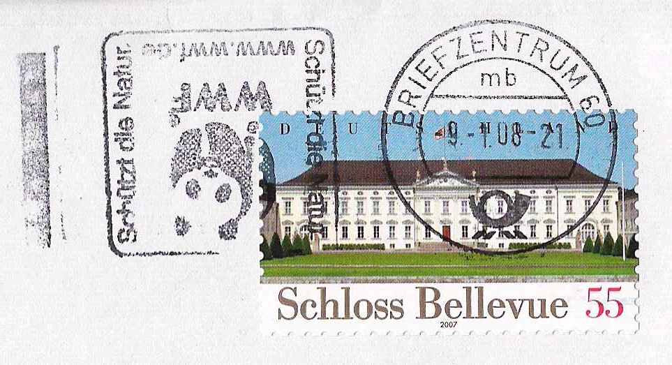 der Werbeeinsatz kommt auch normal vor. Im Anhang drei Abschläge (Maschine a, b und c) aus dem Jahre 2005. Von 2005 gibt es aber auch einen Kopfsteher von Maschine a. Auch vom BZ 10 und 13 sind Kopfsteher mit dem WWF-Logo bekannt.