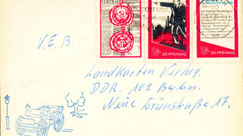 Auf dem gezeigten beleg "bittet die post darum, die sendung richtig frei zu machen" und der absender verwendet spendenmarken des fdgb (einheitsgewerkschaft der ddr)Mfg wajdz8