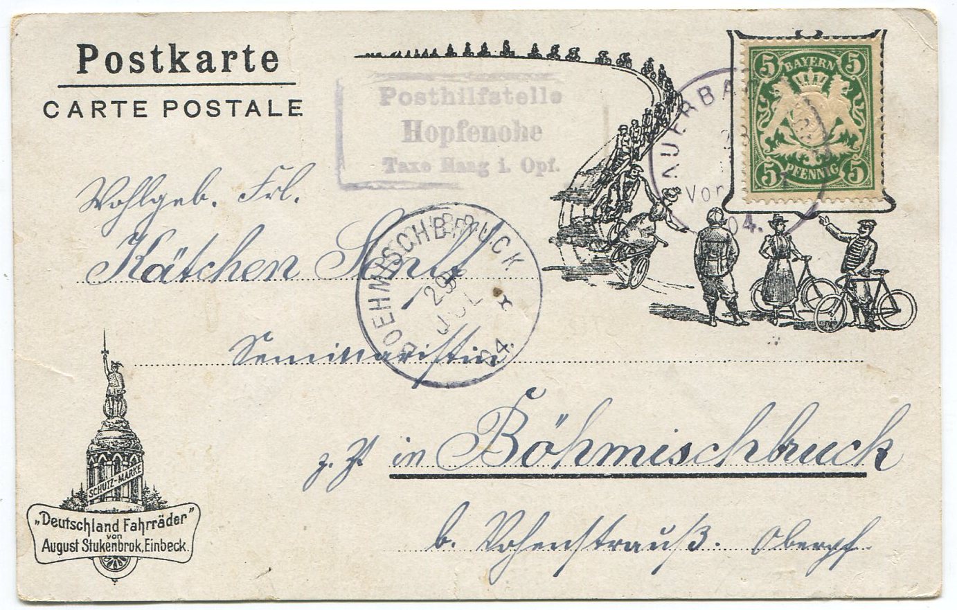 mit Posthilfstellenstempel von Hopfenohe zeigen. Der erste Beleg