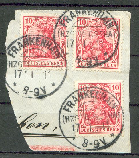Dreimal auf germania Frankatur von 1911.