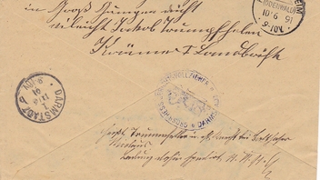 Rückseite als Ankunftsstempel: