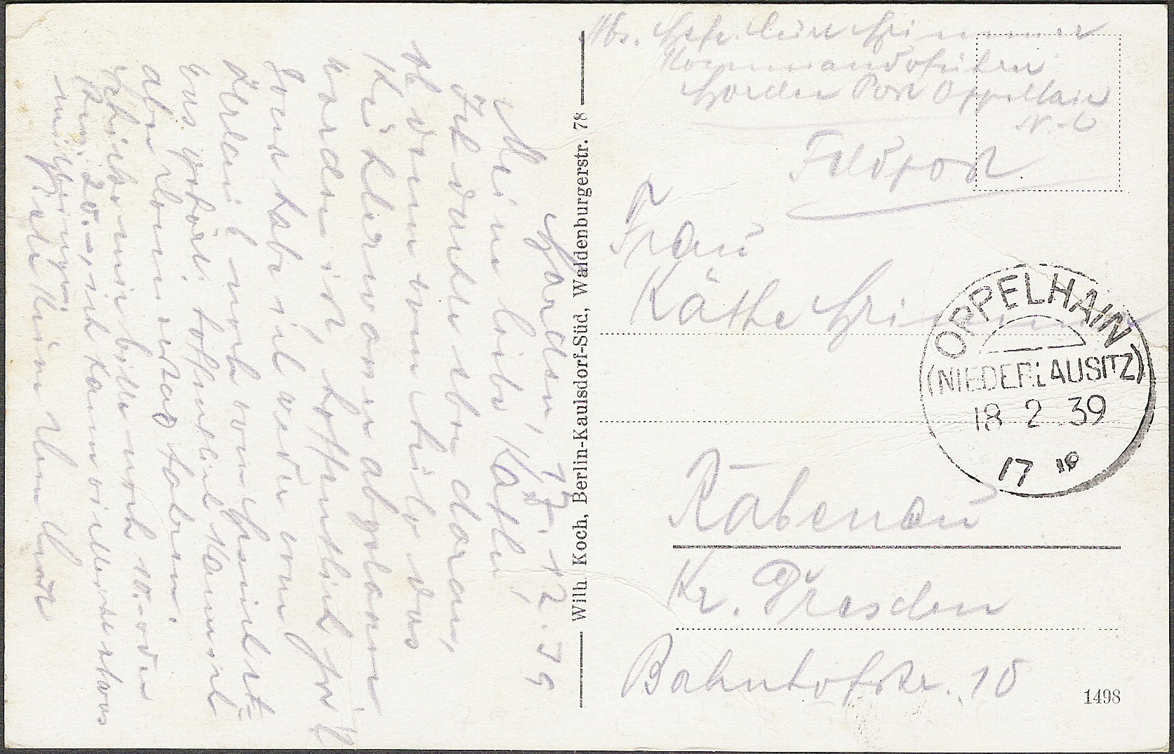 AK aus Gorden N.L. mit Stempel von Oppelhain(Niederlausitz) vom 18.2.39