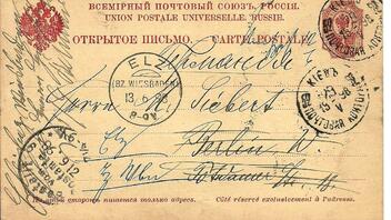 Dieser Beleg hätte auch in die Threads Russische Ganzsachen im Auslandsverkehr sowie Nebenvermerke (Nachsendung von Berlin nach Elz) gepasst. Letztendlich habe ich mich für diesen Thread entschieden, da der Stempel ELZ / (BZ. WIESBADEN) so schön klar abgeschlagen ist und – wenn die Suchfunktion von mir richtig bedient wurde - noch kein KOS des Ortes Elz hier gezeigt wurde.