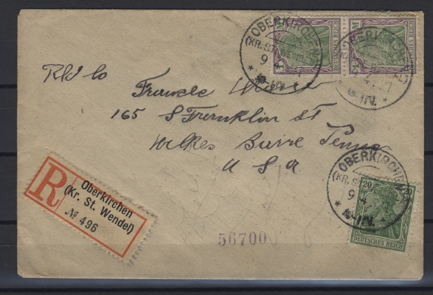 KOS - Oberkirchen auf Einschreibebrief nach USA.