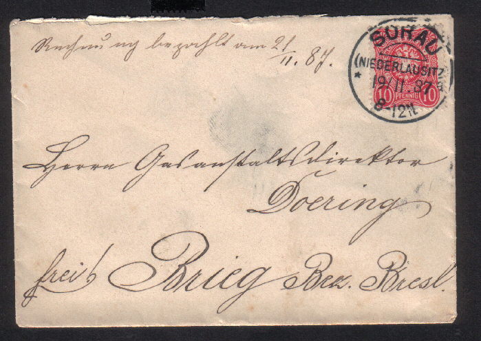 auf 10 Pf. Mi.Nr.41, KOS aus Sorau /Niederlausitz OPD Frankfurt/Oder Typ V/2