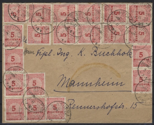 KOS Frankenhausen auf Einschreibebrief und der 5 Pfennig als reine MeF.