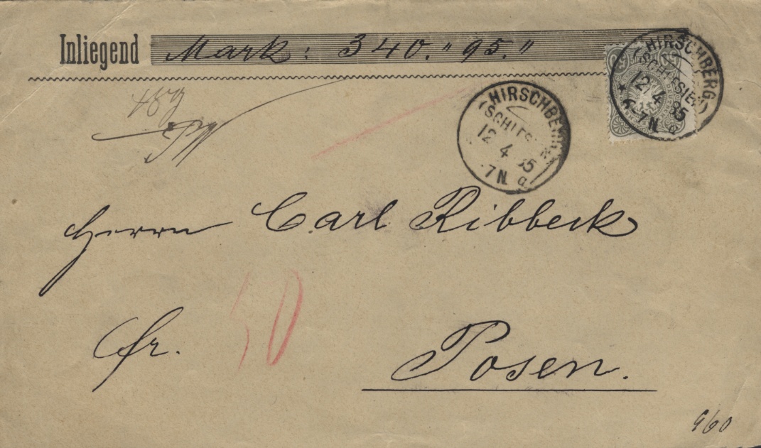 Wertbrief mit KOS Hirschberg (Schlesien)