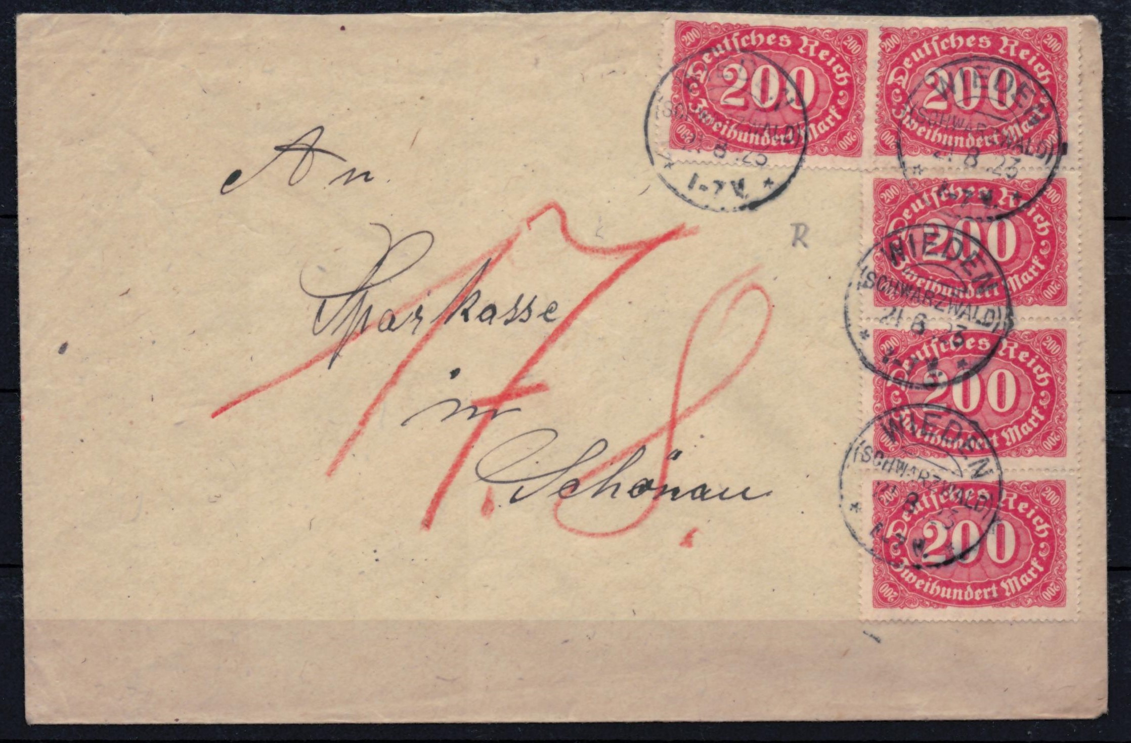 WIEDEN / SCHWARZWALD / * * - laut der Registratur von postschild vom 07.05.1908 bis 10.11.1935 verwendet - also kein neues Datum