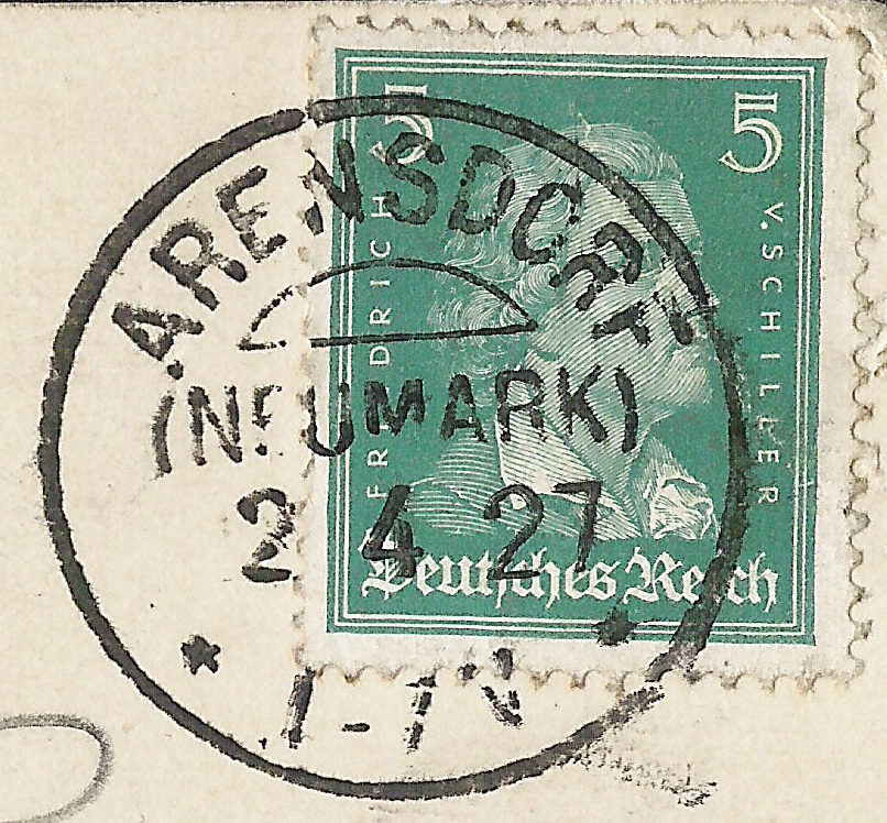 Hallo hier ein Stempelabschlag vom 2.4.27 aus Arensdorf(Neumark).