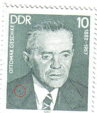 8 ) Rahmen links unten ( Dieses Bild wird nachgereicht, sorry, es wurde der zweite Fehler auf dieser Marke -Punkt über 2. D von DDR- abgebildet