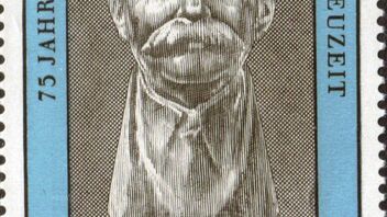 und einmal mit einem dunklen Fleck in der Bildmitte rechts neben der Büste