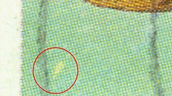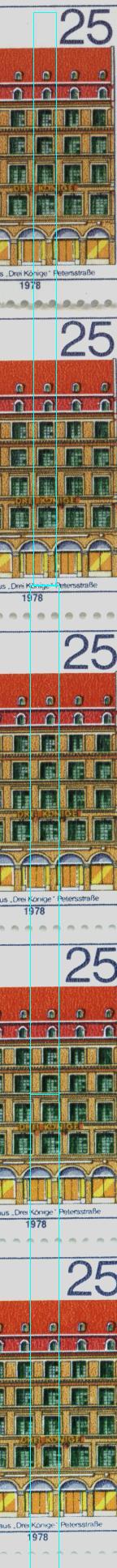 3) grüner Strich durch die 8 von 1978 ( unten ) durch 5 senkrechte Marken ( am Bild wahrscheinlich schlecht zu erkennen. Am Bogen eindeutig schwach grün )
