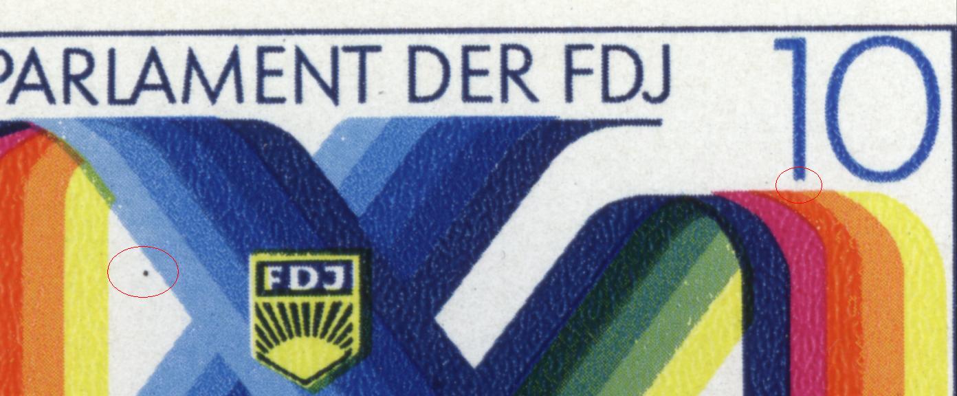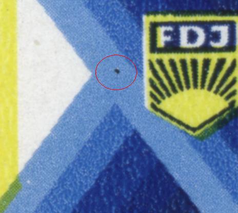 2) Punkt im weißen Dreieck links des FDJ Emblems + Anstrich der 1 unten mit Kerbe