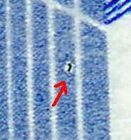 ich habe ja eine Passerverschiebung vermutet, jedoch wäre bei einer Verschiebung des Schwarzdruckes nach oben noch ein Punkt /Fleck übrig. ( siehe scan - blauen Strich )