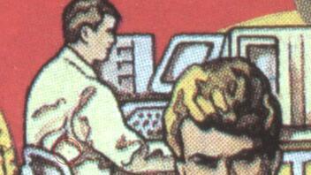 Mi.-Nr. 2359: langer roter Strich an der Raumstation (in der gleichen Farbe des Rahmens)