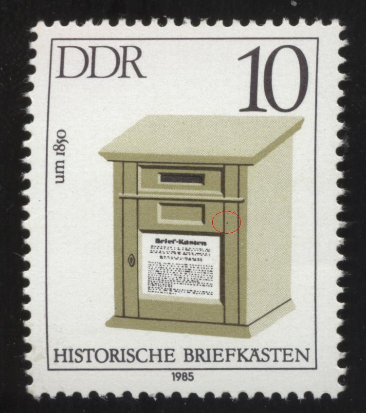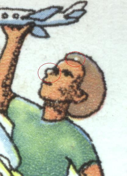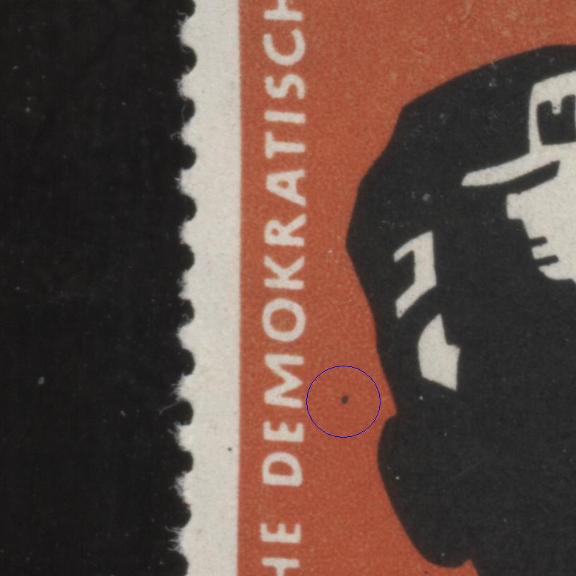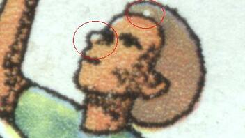 Einen schwarzen Punkt links neben dem Gesicht.