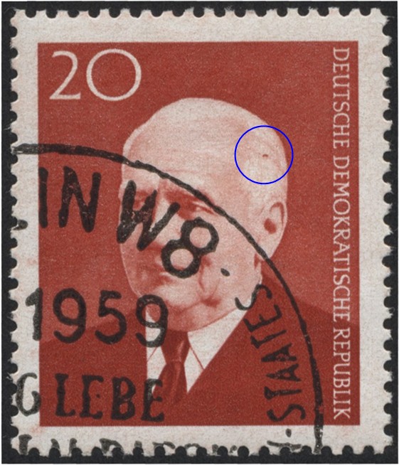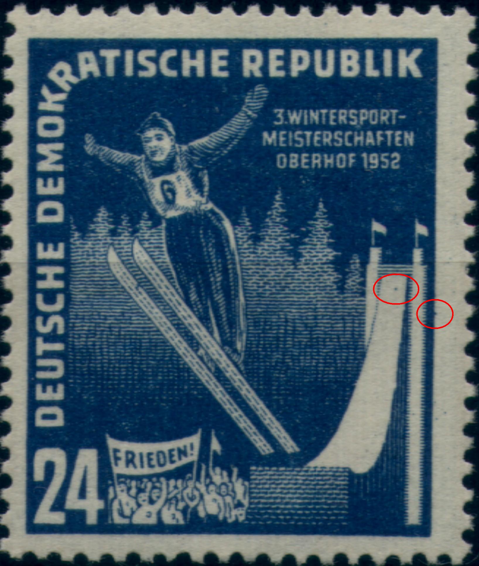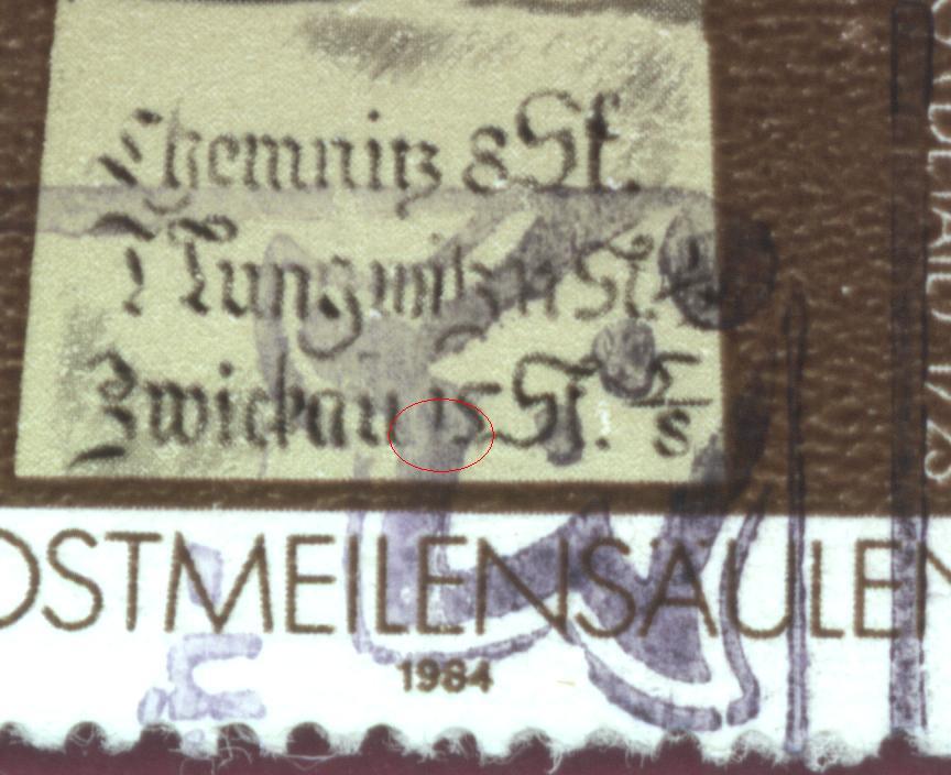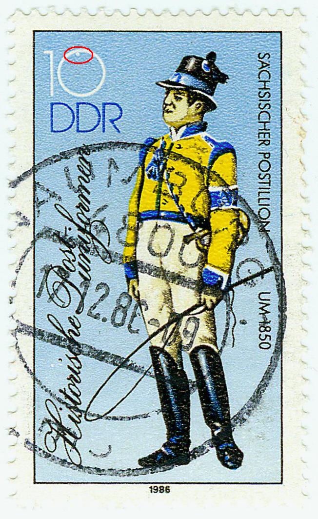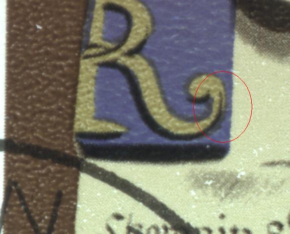 1) schwarzer Strich ( Passer ? ) im Bogen des R ( links )