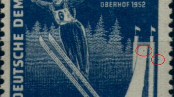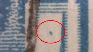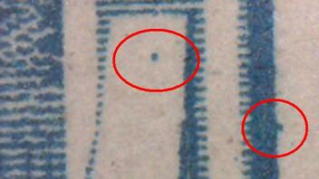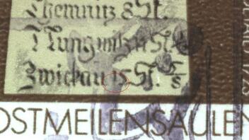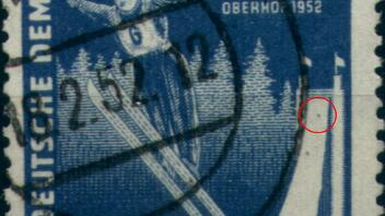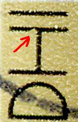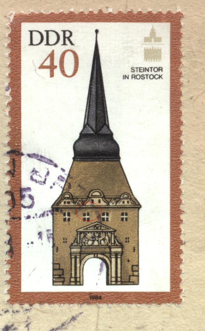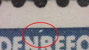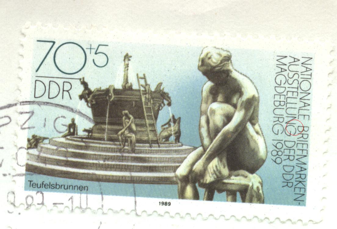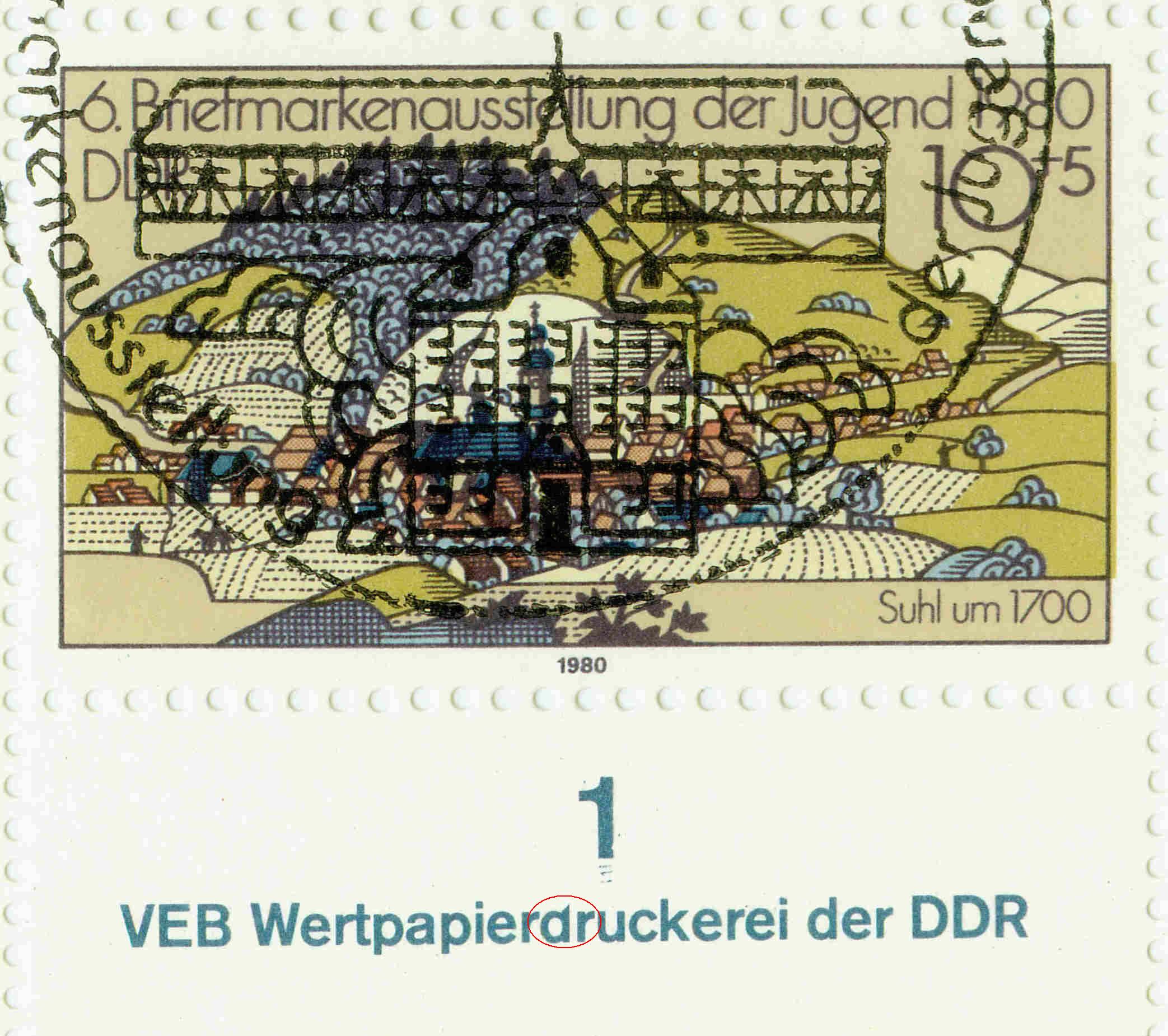 1) schwarzer Strich ( Passer ? ) im Bogen des R ( links )
