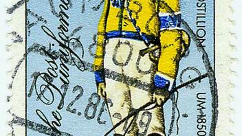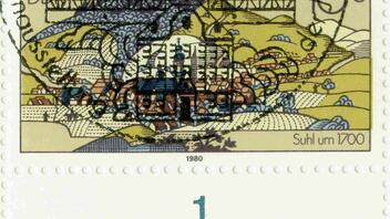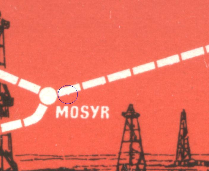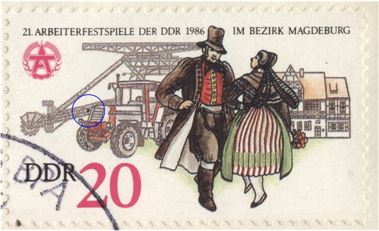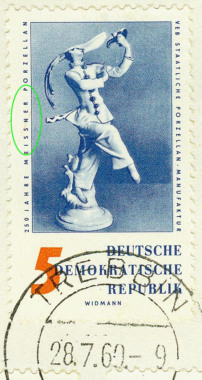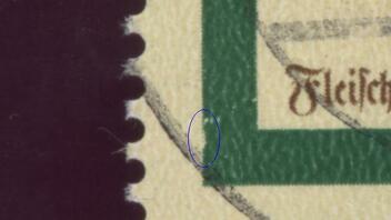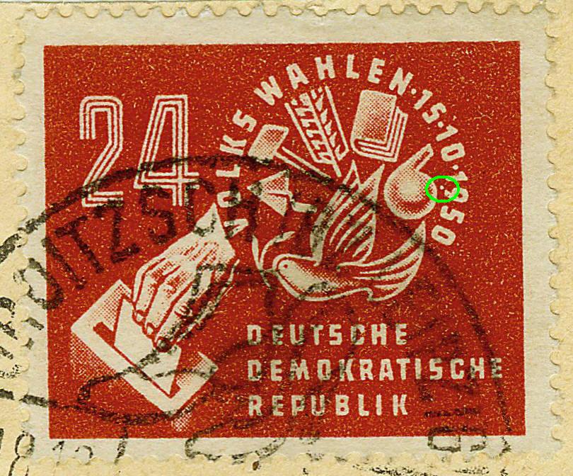 eine 774 mit Farbstrich in der Farbe der Wertziffer (orange) am Markenrand links