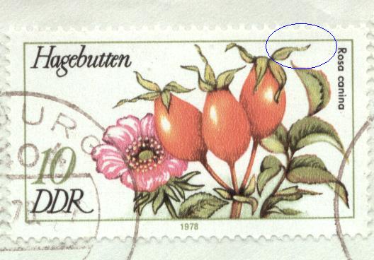 Ich habe eine Hagebutte 2287 mit eingekerbten rechten oberen Blatt.