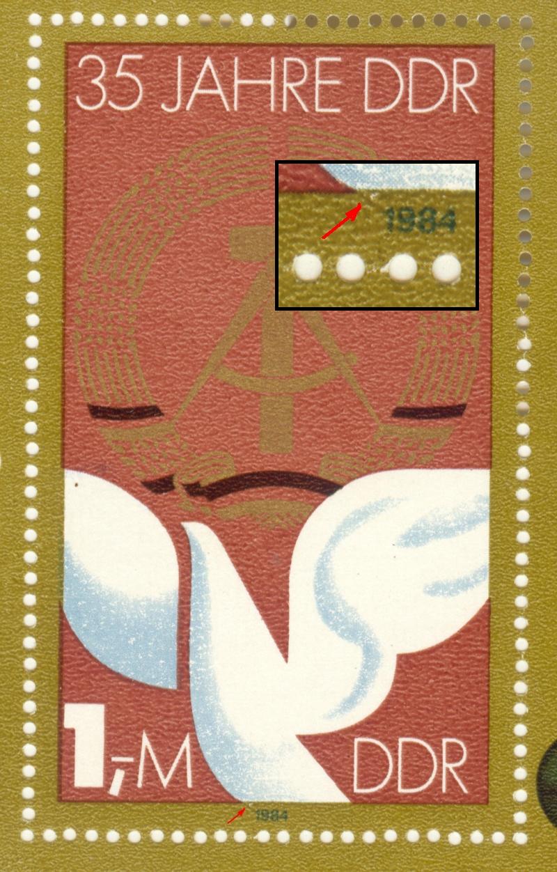 Bleibe auch heute meinen Strichen treu. Dieses mal die 2902 (Block 79) mit verlängerter Rumpflinie der Taube bis hin zur "1" der Jahreszahl "1984"