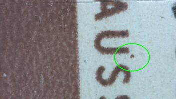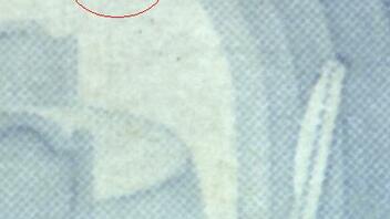 2. Farbfleck in der Höhe des "A" von "THOMAS"