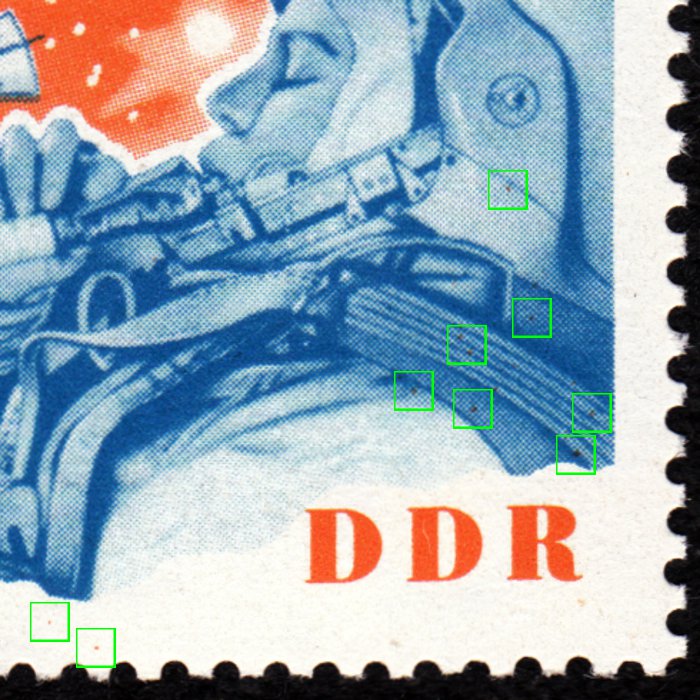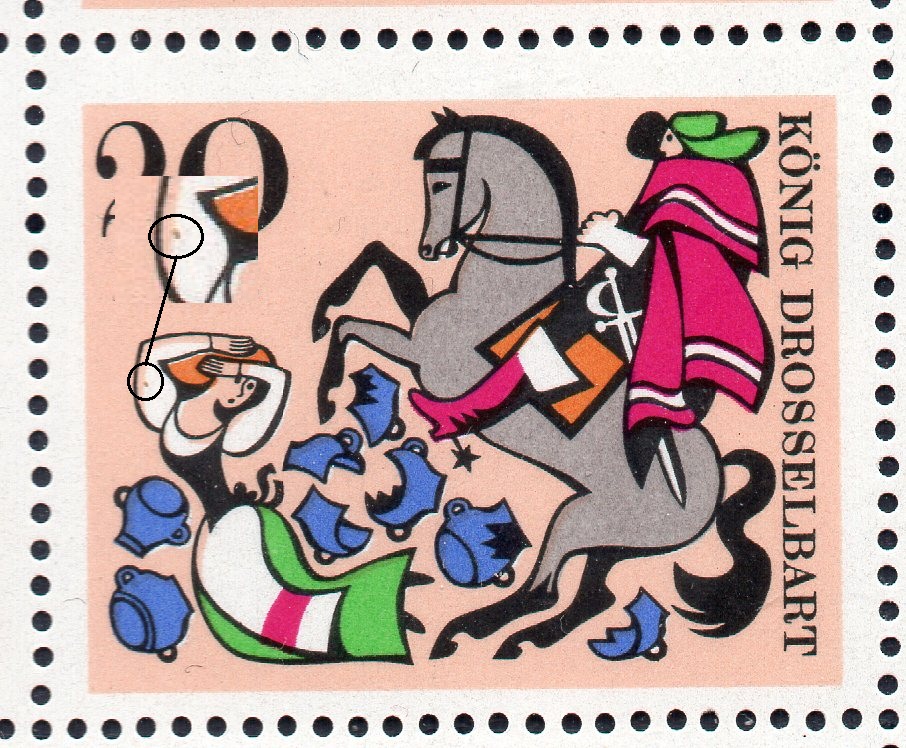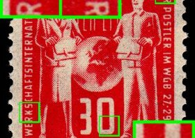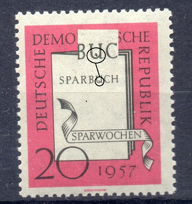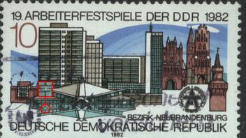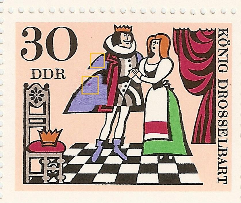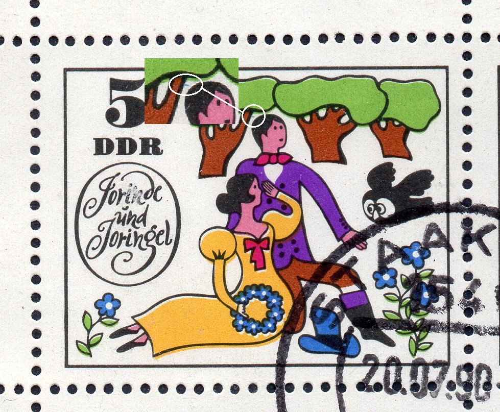 Eine 2612 mit einem Punkt am Rand vor DDR und einem Farbpunkt zwischen
