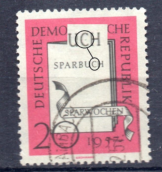 ist ja wieder ein riesiger Posten an Neuigkeiten, doch bisher habe ich davon nichts in meinem Fundus aufgespürt. Mir ist eine 664 über den Weg gelaufen, bei der ich einen Rahmenbruch über dem "S" von "DEUTSCHE" gefunden habe.
