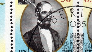 Der Punkt im bart des mittleren Mannes und der Strich zwischen 9 und 8 von