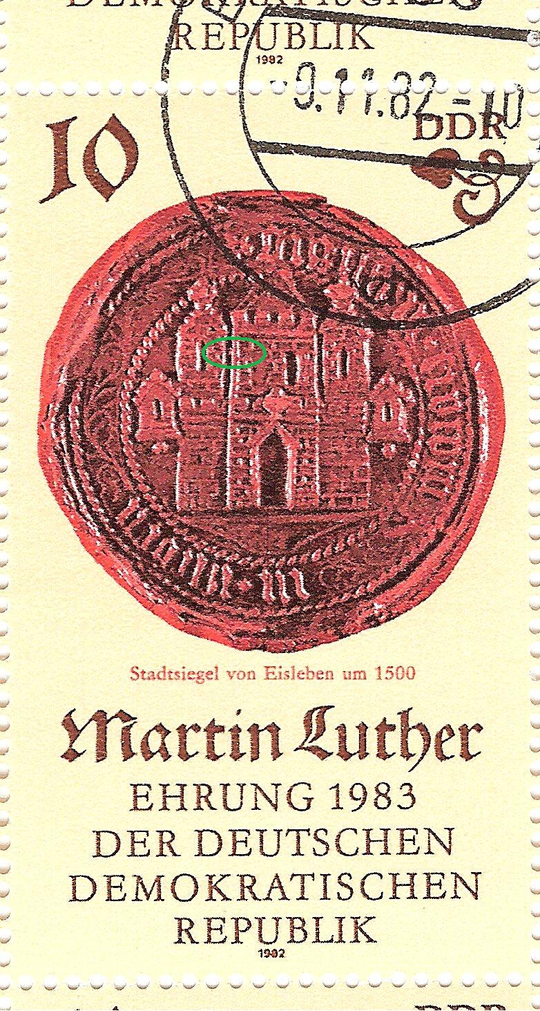 Mi.Nr. 1064: schwarzer Fleck auf Höhe der Nase des Arbeiters