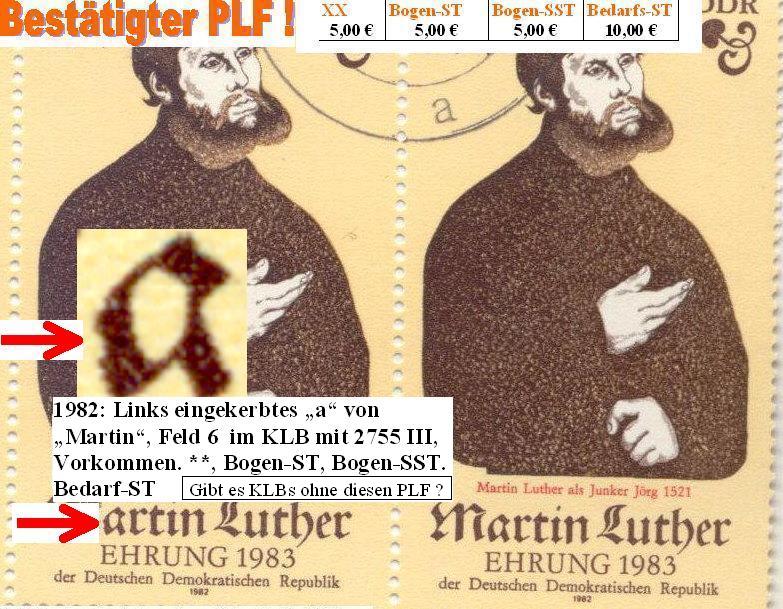 Anbei 5 bereits bestätigte 2755-KLB-Plattenfehler , die immer gemeinsam mit den Michel-PLFs auftreten. -