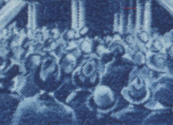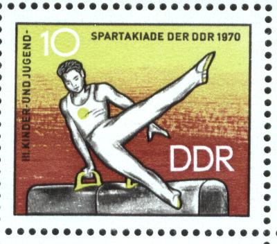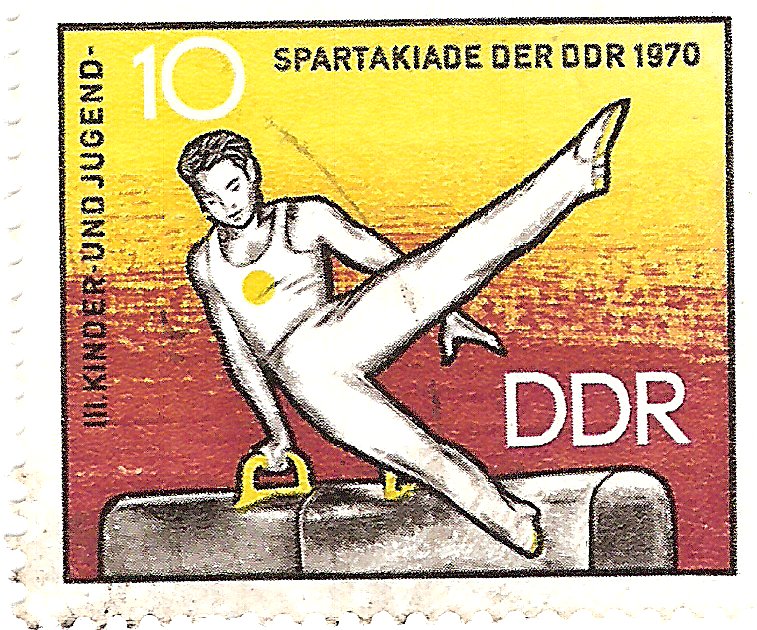 6) verstümmeltes R von Spartakiade und 2 Punkte im Bein und Hose.