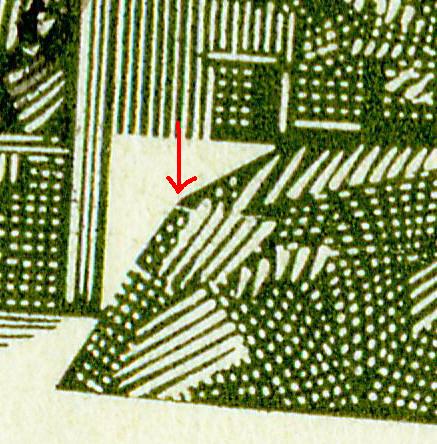 Mi.-Nr. 813: grüner Fleck über dem "R" von Schalter