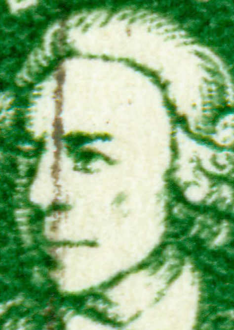 brauner Fleck zwischen Wertziffer "5" und linken Mann.