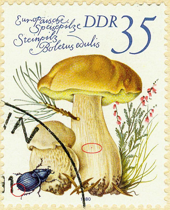Die Reihe mit den 3 Rasterpunkten zwischen den Grannen fehlt, ich frage mich ob es ein Plattenfehler ist oder eine Druckzufälligkeit oder einfach Herstellungsbedingt?