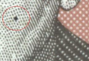1) schwarzer Fleck/Punkt links oben neben Vase